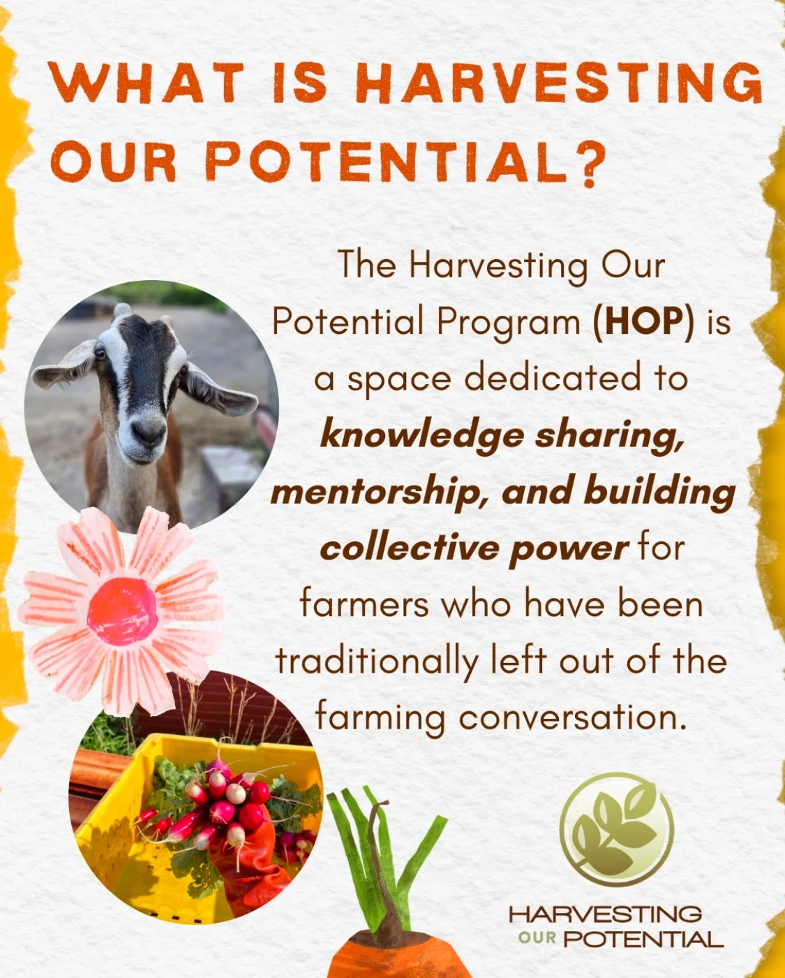 We are partnering with the Women, Food & Agriculture Network’s Harvesting Our Potential Program to offer an apprenticeship/mentoring program alongside part-time paid employment.